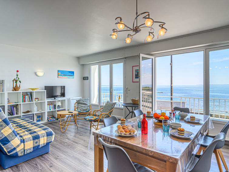 Residenz "Le Grand Large", auf 4 Stockwerken. Im Ort, 500 m vom Zentrum, 10 m vom Meer, 400 m vom Strand. Öffentliche Parkplätze. Einkaufsgeschäft, Lebensmittelgeschäft 100 m, Restaurant 10 m, Zentrum zu Fuss in 5 Minuten erreichbar, Bushaltestelle 250 m, Sandstrand "Grande Plage" 500 m, Hallenbad 2.3 km, Thermalbad "Thalassothérapie De Quiberon" 2.7 km. Golfplatz (9 Loch) 2.3 km, Surfschule 10 km, Tennis 2.4 km. Nahe gelegene Sehenswürdigkeiten: Côte Sauvage de Quiberon 200 m, Carnac, Les Alignements 18 km, Auray 25 km, Vannes 60 km, Casino de Quiberon, Belle ile en Mer, Houat et Hoedic. Die Schlüsselübergabe findet bei der Agentur Interhome in Quiberon statt, 1 km.