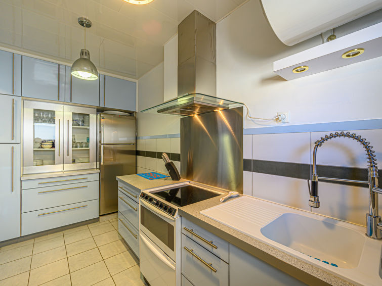 "Le Grand Large", 2-Zimmer-Wohnung 54 m2 im 1. Stock. Komfortabel eingerichtet: Wohn-/Esszimmer mit 1 x 2 Etagenbetten (90 cm, Länge 190 cm), TV (Flachbildschirm). Ausgang zum Balkon. 1 Zimmer mit 1 franz. Bett (1 x 140 cm, Länge 190 cm), TV (Flachbildschirm). Küche (3 Kochplatten, Backofen, Geschirrspüler, Toaster, Tiefkühler, elektrische Kaffeemaschine, Kapseln für die Kaffeemaschine (DOLCE GUSTO) extra, Kombinationsmikrowelle). Dusche/WC. Kleiner Balkon 3 m2. Sehr schöne Sicht auf das Meer. Zur Verfügung: Internet (Wireless LAN, extra). Parkplatz beim Haus. Bitte beachten: Rauchmelder. Inserat einer Privatperson nach Artikel 155, IV, CGI.