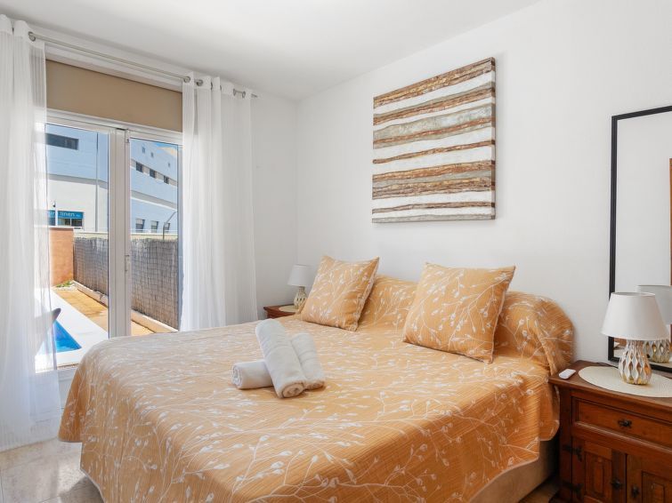 "Flores", 4-Zimmer-Doppelhaushälfte 70 m2 auf 2 Stockwerken. Geräumig und hell, einfach und zweckmässig eingerichtet: Wohn-/Esszimmer mit Digital-TV, Klimaanlage, Ventilator und Warmluftheizung. Ausgang zur Terrasse. 1 Zimmer mit 2 Betten (80 cm, Länge 190 cm), Ventilator. 1 Zimmer mit 1 franz. Bett (1 x 160 cm, Länge 200 cm). Ausgang zur Terrasse, zum Schwimmbad. 1 Zimmer mit 2 Betten (80 cm, Länge 190 cm). Offene Küche (Backofen, 3 Glaskeramikplatten, Toaster, Wasserkocher, Mikrowelle, elektrische Kaffeemaschine). Bad/Bidet/WC. Warmluftheizung. Terrasse. Terrassenmöbel, Gartengrill, Sitzplatz. Sicht auf das Städtchen. Zur Verfügung: Waschmaschine, Bügeleisen, Haartrockner. Internet (WLAN, gratis). Parkplatz beim Haus. Bitte beachten: Nichtraucher-Haus. R000000001