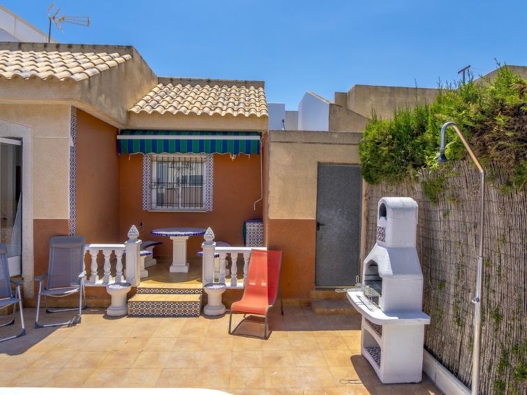Schönes Doppelhaus "Flores", auf 2 Stockwerken. 5 km vom Zentrum von Dehesa de Campoamor, 2 km vom Zentrum von Playa Flamenca, 1 km vom Zentrum von La Zenia, sonnige Lage, 1.4 km vom Meer, 1.4 km vom Strand. Zur Alleinbenutzung: Grundstück (eingezäunt), Garten, Schwimmbad (8 x 4 m, saisonale Verfügbarkeit: 01.Jan. - 31.Dez.). Aussendusche, Terrasse, Grill. Im Hause: Dachterrasse. Lebensmittelgeschäft, Supermarkt 280 m, Restaurant, Bar, Café 130 m, Bushaltestelle "La Zenia" 350 m, Bahnstation "Orihuela" 28 km, Sandstrand "Playa La Zenia" 1.4 km. Der Besitzer akzeptiert keine Jugendgruppen.