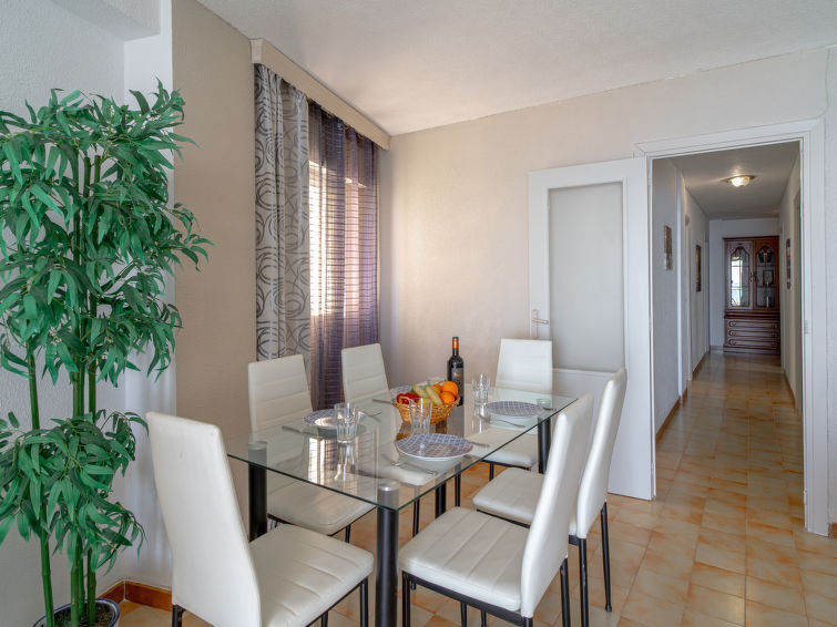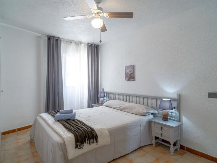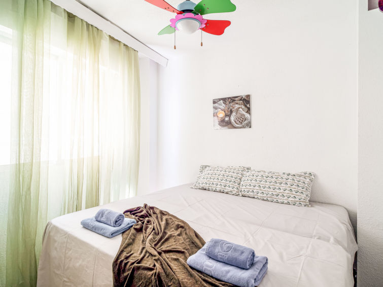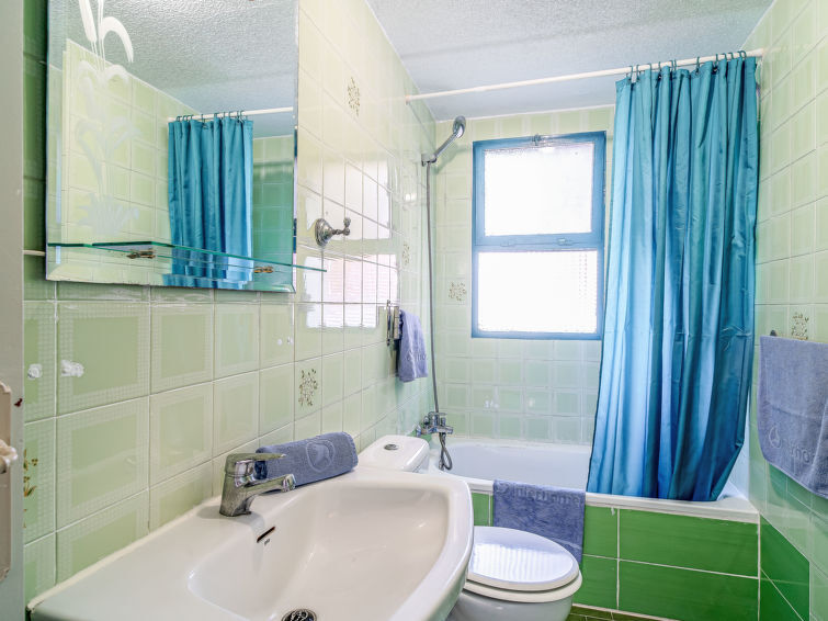 "Elomar", apt 4 pièces 90 m2 au 8ème étage. Aménagement confortable et plaisant: séjour avec Télévision numérique. Sortie sur la terrasse. 1 chambre avec 1 grand-lit (150 cm, longueur 190 cm), bain/WC, radiateur électrique et ventilateur. 1 chambre avec 1 lit (90 cm), 1 lit gigogne (2 pers. 2 x 90 cm, longueur 190 cm), radiateur électrique et ventilateur. 1 chambre avec 2 lits (90 cm, longueur 190 cm), radiateur électrique et ventilateur. Cuisine (four, 4 plaques vitrocéramiques, grille-pain, bouilloire électrique, cafetière électrique). Bain/WC. Petite terrasse. Meubles de terrasse. Superbe vue sur la mer. A disposition: lave-linge, fer à repasser, sèche-cheveux. Internet (Connexion WIFI, gratuit). Veuillez noter: pas de parking. VUT/GR/06823