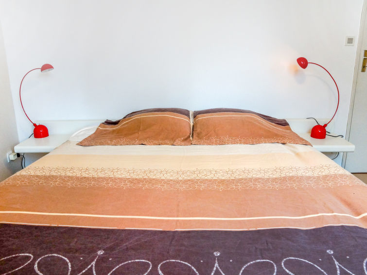 Apt 3 pièces 55 m2 au 2ème étage. Logement idéal pour 2 adultes + 3 enfants. Aménagement confortable: séjour/salle à manger avec TV (écran plat). 1 chambre avec 1 grand-lit (160 cm). 1 chambre avec 1 x 2 lits superposés, 1 lit gigogne (1 pers.). Cuisine ouverte (four, lave-vaisselle, 3 plaques à induction, grille-pain, bouilloire électrique, micro-ondes). Bain/WC. Chauffage. Balcon, situation sud-est. Mobilier de balcon. Belle vue sur la mer. A disposition: lave-linge. Internet (Connexion WIFI, gratuit). Place de parking. Veuillez noter: logement non-fumeur. Détecteur de fumée.