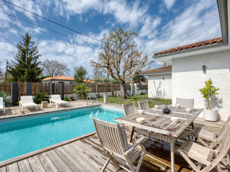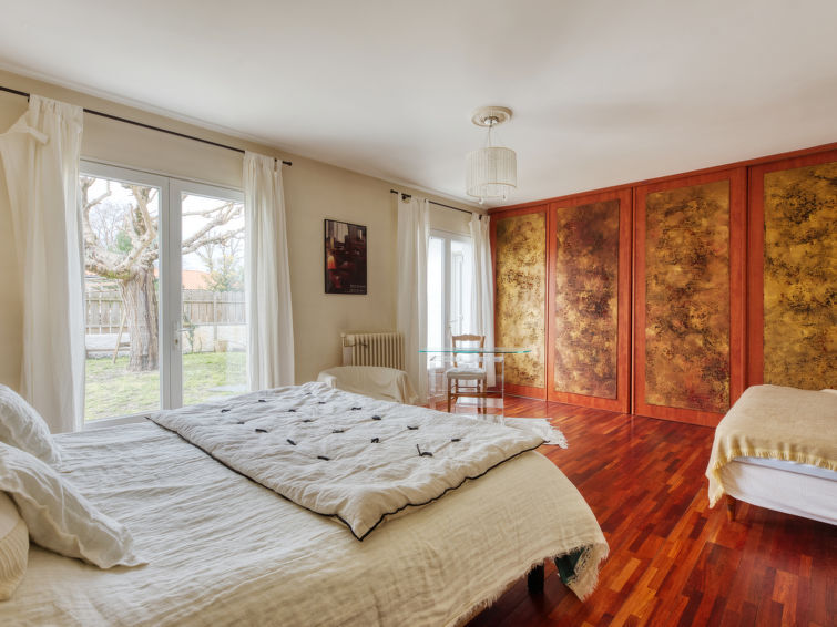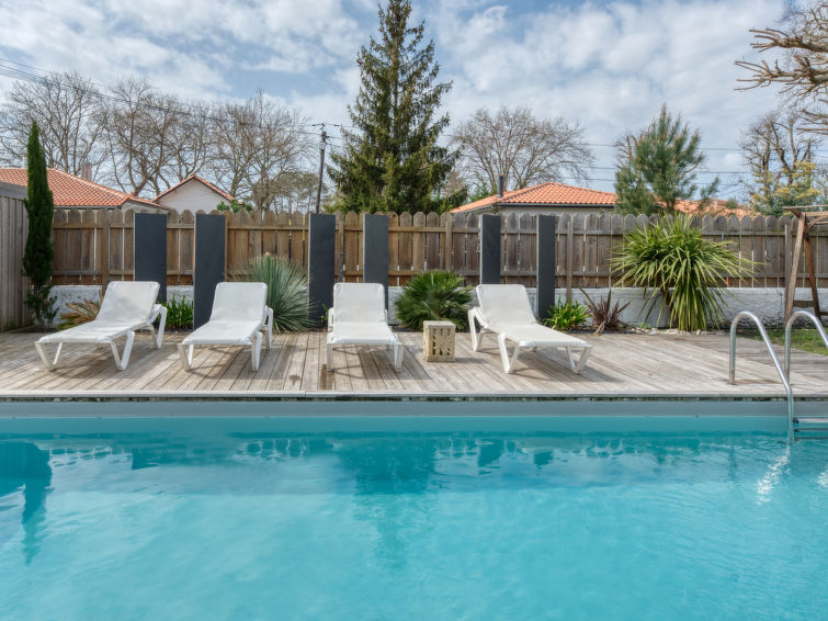 Mooi villa "Andernos Bassin". 2.2 km van het centrum van Andernos-les-Bains, 40 km van het centrum van Arcachon, 45 km van het centrum van Bordeaux, in een woonwijk, 2.2 km van zee, 2.2 km van het strand. Voor alleengebruik: terrein 800 m2 met wilde tuin, openluchtzwembad verwarmd (8 x 4 m, 150 cm diepte, seizoensgebonden beschikbaarheid: 01.Mei. - 30.Sep.) met oprolbaar afdekscherm. Terras, onderhoud zwembad door de eigenaar/tuinman. In het huis: tafeltennis. Parkeerplaats (voor 3 auto's) bij het huis op het terrein. Winkel 1.5 km, supermarkt 1.5 km, restaurant 2 km, voetgangersgebied 2 km, bushalte "Commandant Tulasne" 200 m, zandstrand "du Bétey / de la Jetée (Bassin)" 2.5 km. Golfterrein (9 holes) 4 km, tennis 2.5 km. Attracties in de buurt: Plage océane Grand Crohot 18 km, Cap Ferret (Pointe/phare) 28 km. De eigenaar woont op hetzelfde terrein. De omgeving is gevoelig voor geluidsoverlast. Gelieve geen lawaai te maken en de rust te bewaren.