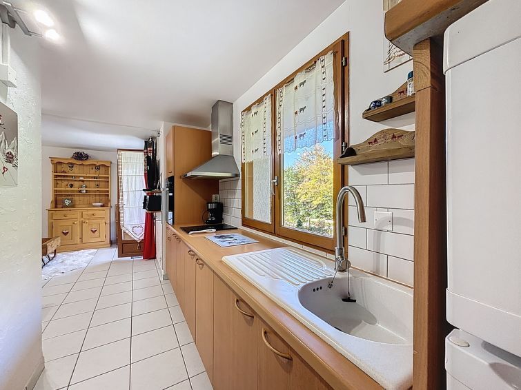 Appartement 2-kamers 42 m2, op de begane grond. Gerenoveerd in 2024, comfortabel en mooi ingericht: woon-/eetkamer met panoramavenster met TV (Flatscreen TV). 1 kamer met 1 x 2 stapelbedden (80 cm, lengte 190 cm), 1 2-pers bed (140 cm, lengte 190 cm). Open keuken (oven, afwasmachine, 2 keramische glas kookplaten, broodrooster, waterkoker, magnetron, elektrische koffiemachine, raclette oven, fondue Set (kaas)) met eettafel. Douche, aparte WC. Verwarming, boiler. Op het zuidwesten gelegen. Terrasmeubelen. Mooi panoramazicht op de bergen. Ter beschikking: wasmachine. Internet (WiFi, gratis). Parkeerplaats bij het huis. Niet rokers woning. Privé ingang, rookmelders. Aanbod door een particulier volgens art. 155, IV van CGI.