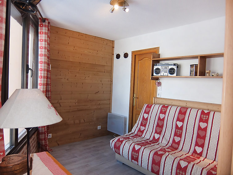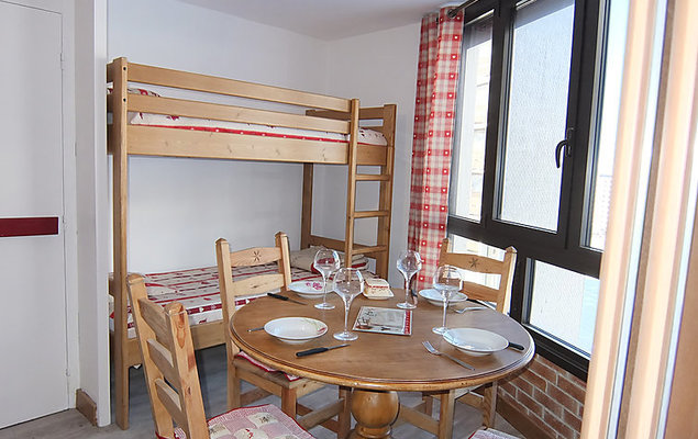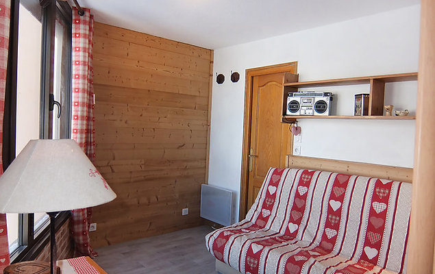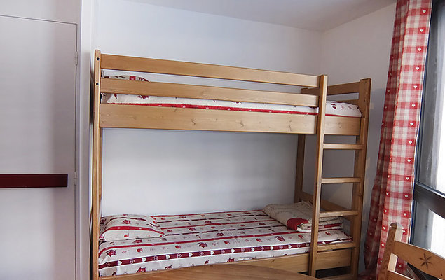 "Belleville Caron 624", appartement 2-kamers 25 m2 op de 6e verdieping, op het noorden gelegen. Volledig gerenoveerd, doelmatig en comfortabel ingericht: woon-/eetkamer met 1 x 2 stapelbedden (80 cm, lengte 190 cm), elektrische rolluiken. 1 kamer met 1 2-pers divanbed (140 cm, lengte 190 cm), Flatscreen TV, DVD en elektrische rolluiken. Kookhoek (afwasmachine, 2 keramische glas kookplaten, elektrische koffiemachine, raclette oven, combimagnetron). Douche/WC. Elektrische verwarming. Mooi uitzicht op het dal. Ter beschikking: Internet (Internet (WiFi), extra). Let op: rookmelders.