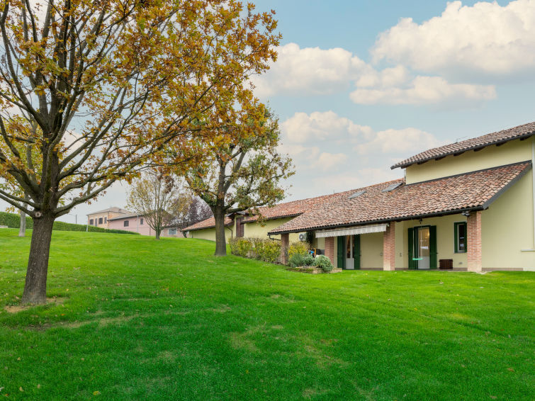 Calliano 10 km van Asti: Mooi, comfortabele cottage "Magna Fina", van 2 verdiepingen, omgeven door weiden, velden en wijngaarden. In het gehucht San Desiderio, 3 km van het centrum van Calliano, geïsoleerde, rustige, zonnige ligging op een heuvel. Voor alleengebruik: terrein 3.000 m2, groot tuin (omheind) met gazon en planten, openluchtzwembad verwarmd (9 x 4 m, 150 cm diepte, seizoensgebonden beschikbaarheid: 01.Apr. - 01.Nov.) met oprolbaar afdekscherm en zout-elektrolyse. Buitendouche, poolhouse met koelkast, douche en fornuis, onderhoud zwembad door de eigenaar/tuinman. Overdekte parkeerplaats (voor 2 auto's) bij het huis. Oplaadstation. Winkel 3 km, supermarkt 8 km, restaurant 200 m, bushalte "San Desiderio" 800 m, treinstation "Asti" 10 km. Attracties in de buurt: Asti 10 km, Alba 30 km, Turin 70 km. Auto noodzakelijk. Baby uitrusting (incl.). Gesloten residentie met een elektrische deur.