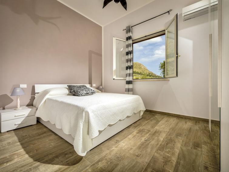 Villa "Mari e Monti". 3 km van het centrum van Castellammare del Golfo, rustige, zonnige ligging, 4 km van zee. Voor alleengebruik: terrein 800 m2 (omheind), openluchtzwembad (10 x 6 m, 120 - 240 cm diepte, seizoensgebonden beschikbaarheid: 01.Apr. - 31.Okt.). Tuinmeubelen, barbecue, onderhoud zwembad door de eigenaar/tuinman. Parkeerplaats (voor 2 auto's) op het terrein. Levensmiddelenwinkel 3 km, supermarkt 3 km, restaurant 3 km, bar 3 km, bushalte 12 km, zandstrand "Castellammare del Golfo" 3 km. Attracties in de buurt: Segesta Parco Archeologico 10 km, Trapani/Porto Aliscafi per Isole Egadi 40 km, Erice 41 km, San Vito lo Capo 48 km, Marsala-Salina 51 km, Palermo 65 km. Auto noodzakelijk.