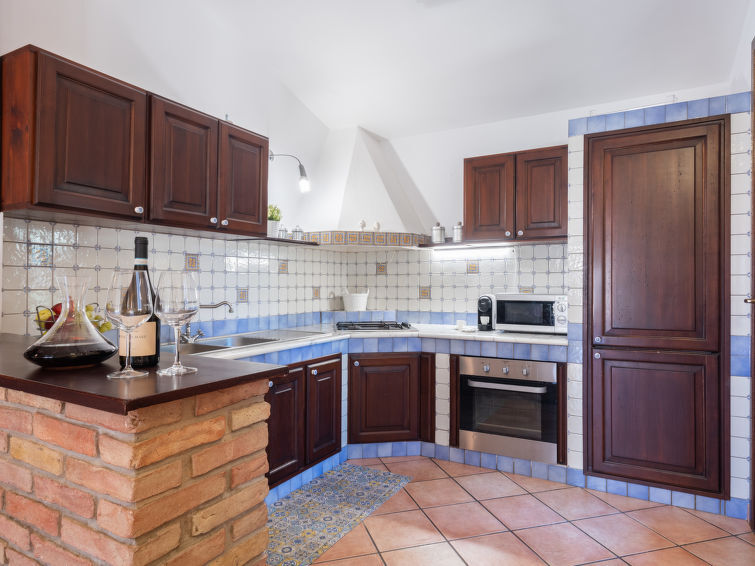 Villa 5-kamers 110 m2. Comfortabel en smaakvol ingericht: woon-/eetkamer met open haard en Sat-TV (Flatscreen TV), air-conditioning en heteluchtverwarming. Uitgang naar de zitplaats in de tuin. 2 2-pers. kamers, elke kamer heeft ventilator. 1 kamer met 1 bed en ventilator. 1 2-pers. kamer met douche/WC en Sat-TV (Flatscreen TV), air-conditioning en heteluchtverwarming. Kookhoek (4-pits kookplaat, oven, afwasmachine, broodrooster, waterkoker, magnetron, elektrische koffiemachine). Douche/bidet/WC. Verwarming, heteluchtverwarming. Verwarming alleen beschikbaar van 01.12. tot 31.03, Verwarming niet in alle ruimtes. Ruime zithoek in de tuin 30 m2, overdekt. Terrasmeubelen, barbecue, ligstoelen. Uitzicht op het zwembad. Ter beschikking: wasmachine, strijkijzer, kinderstoel, kinderbed tot 2 jaar (extra), haardroger. Internet (Internet (WiFi), gratis). Parkeerplaats (3 Auto's). Rookmelders, brandblusser. IT081005C2NS8EGOD9